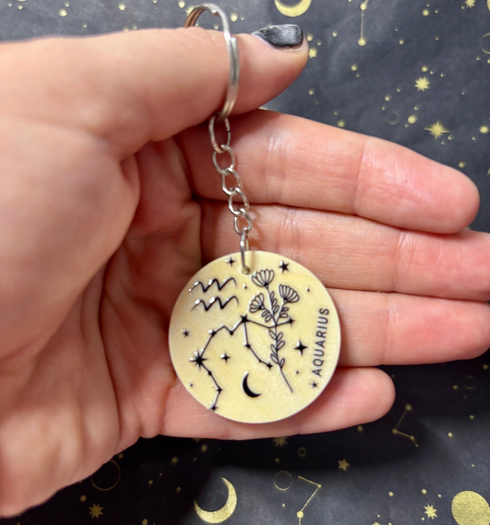 Aquarius Zodiac Constellation Keyring – Wooden Star Sign Keychain