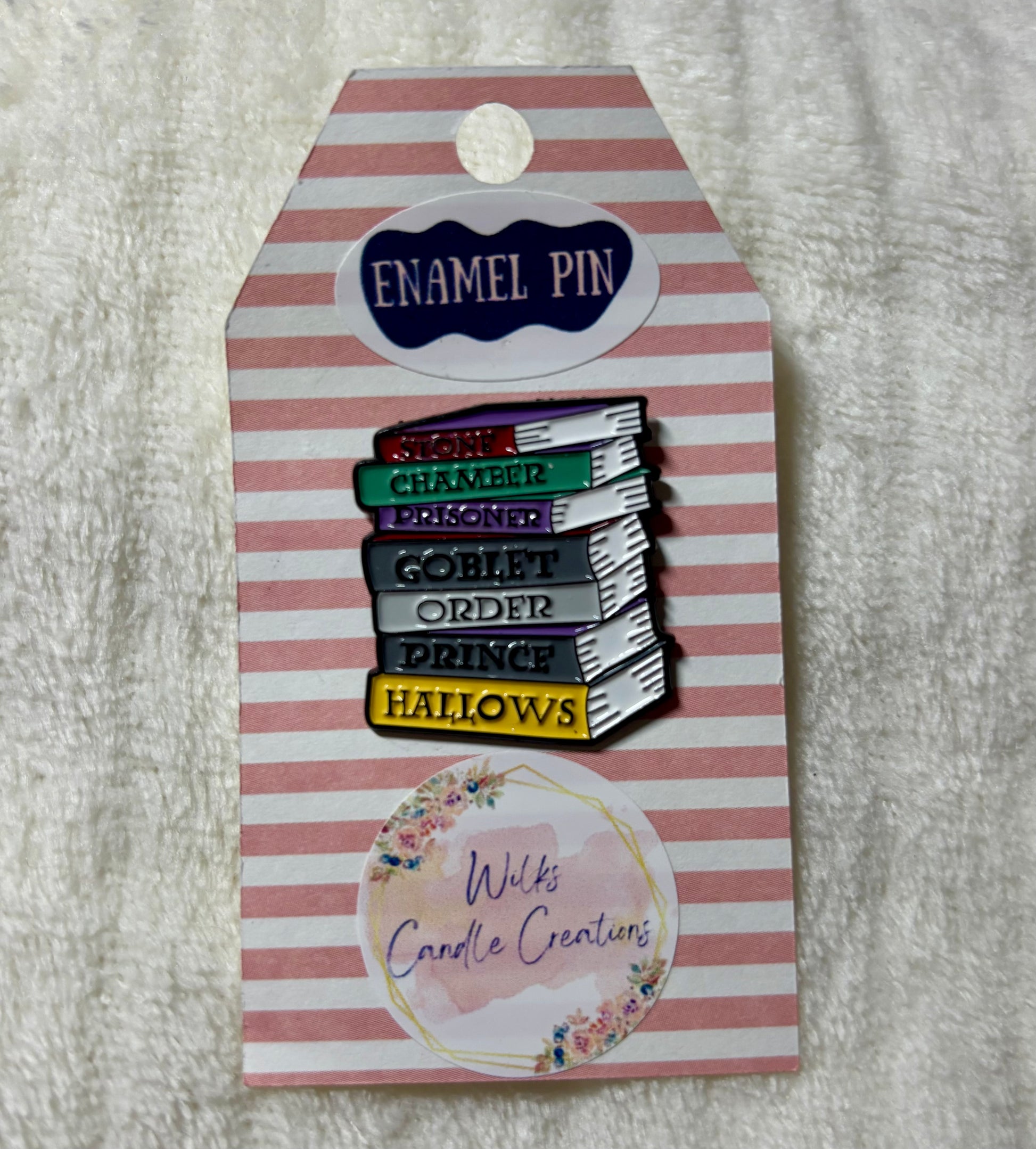 Celebrate your love for the wizarding world with this magical Book Stack Enamel Pin! Featuring a colourful stack of all seven iconic titles — Stone, Chamber, Prisoner, Goblet, Order, Prince, Hallows — this pin is perfect for any book lover or fantasy fan.