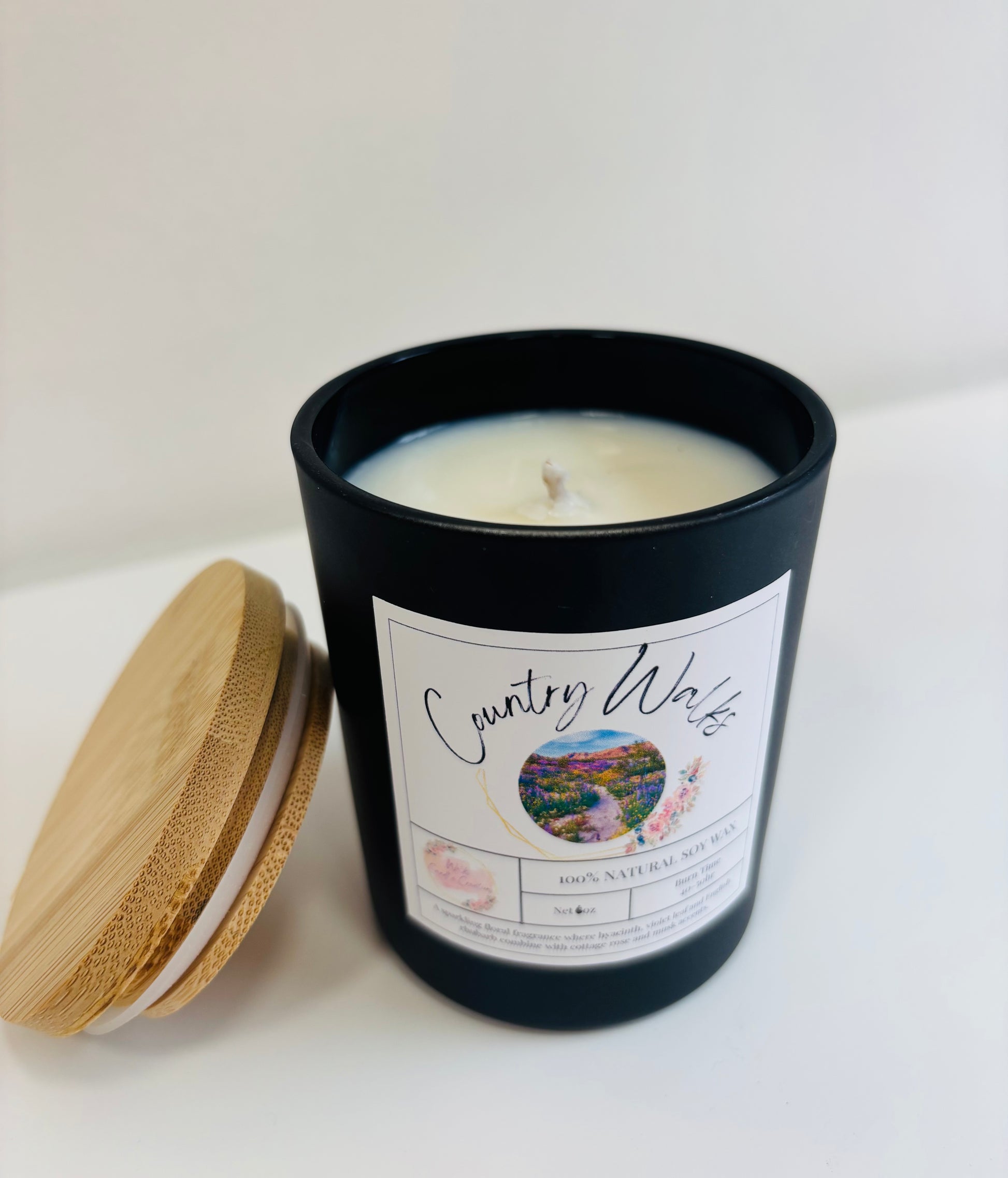 Country Walks Soy Candle | Black Jar with Bamboo Lid | Hand-Poured 6oz