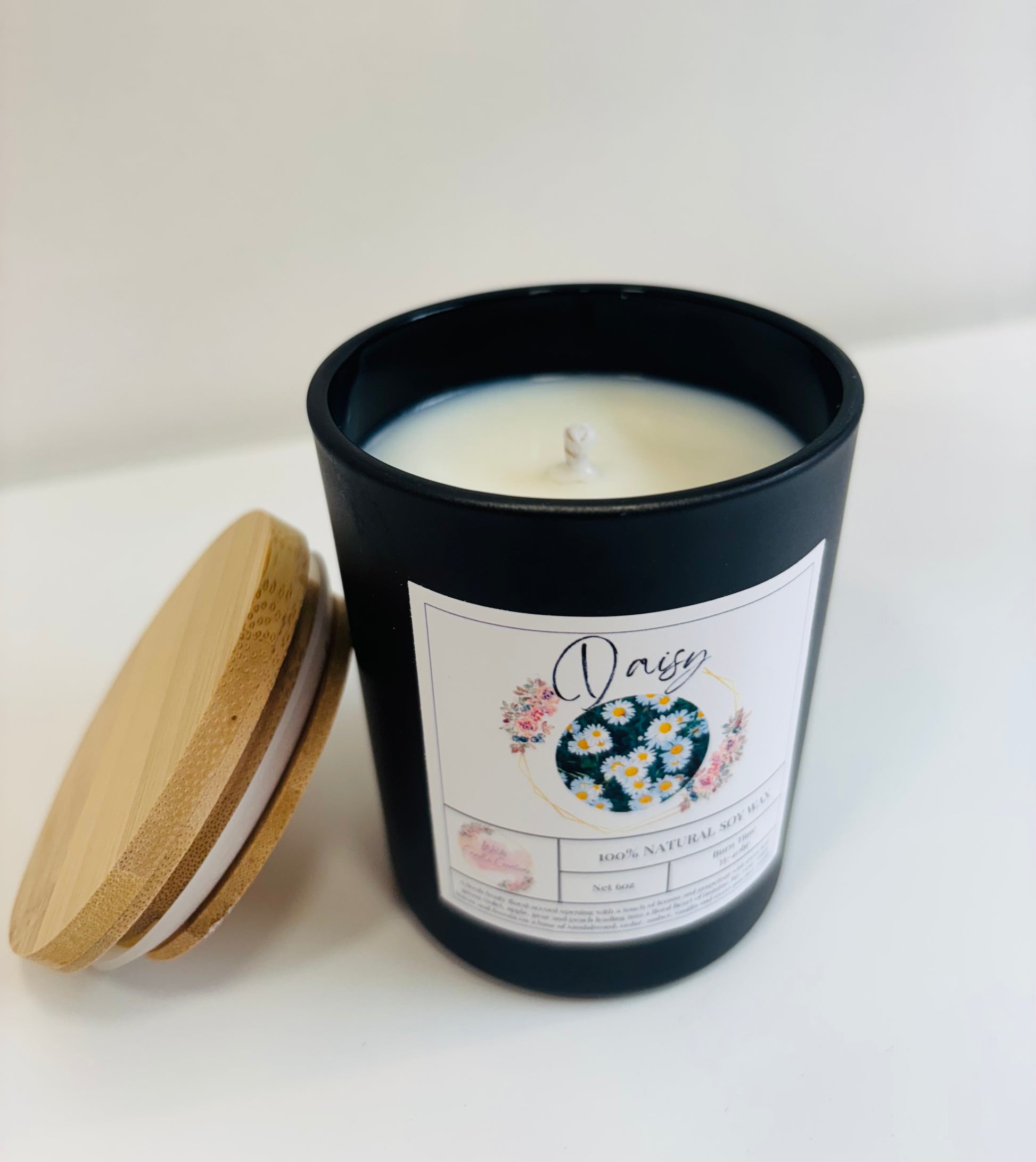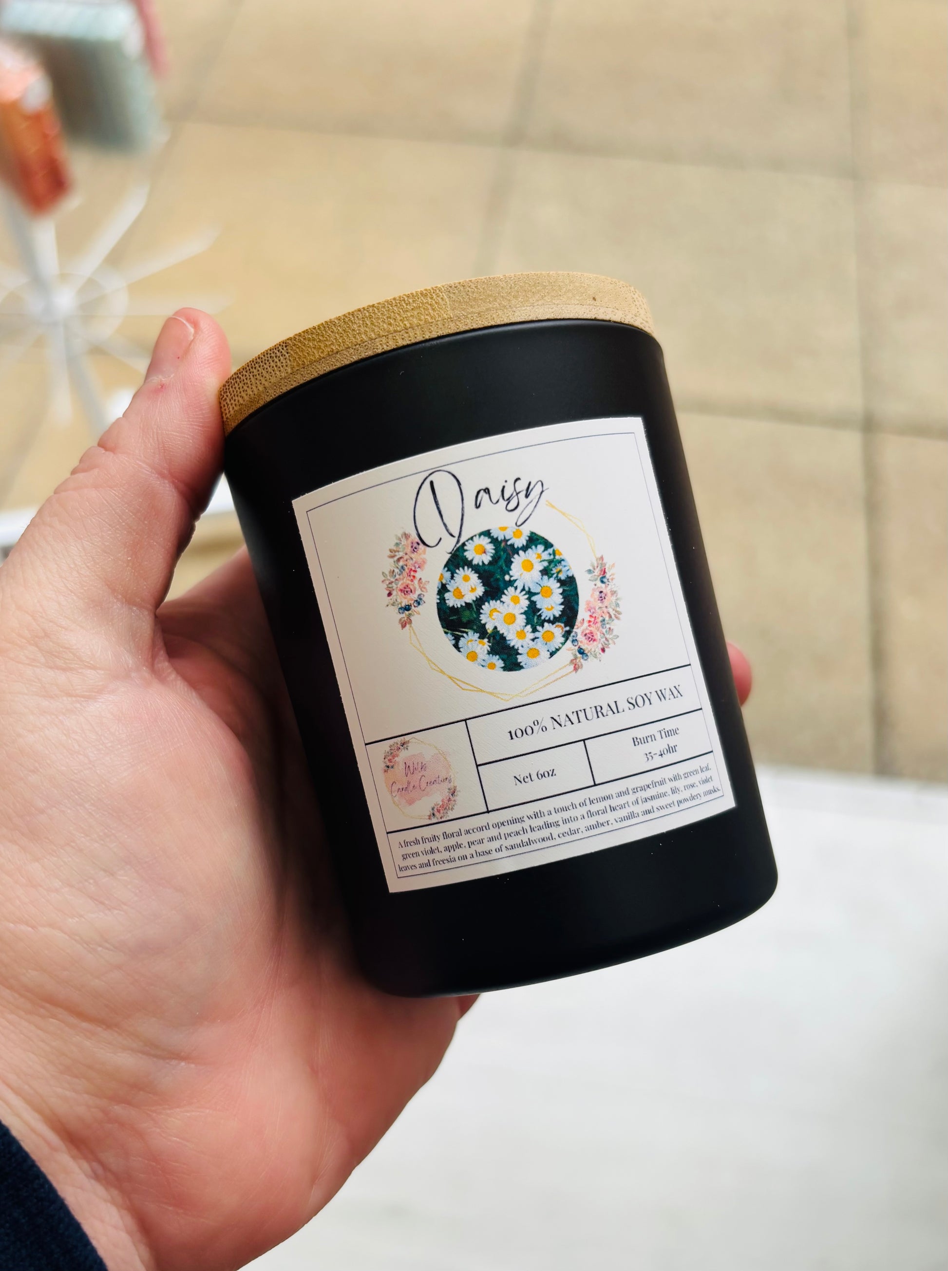 Daisy Soy Candle | Black Jar with Bamboo Lid | Hand-Poured 6oz