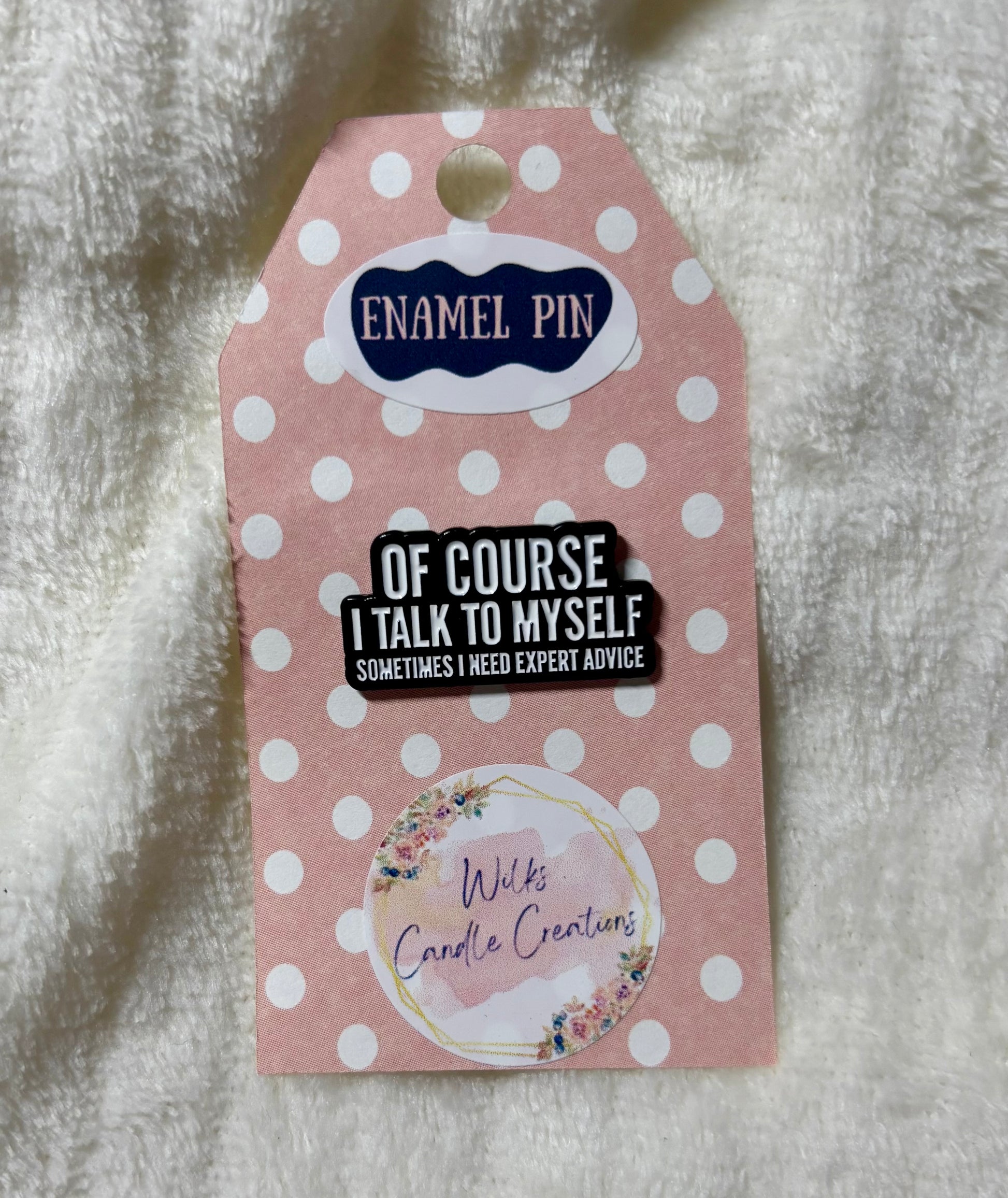 Add a touch of humour to your bag, jacket, or pin board with this quirky enamel pin! Featuring the phrase: “Of course I talk to myself… sometimes I need expert advice” – it’s the perfect accessory for anyone with a sense of humour (and a healthy self-confidence).