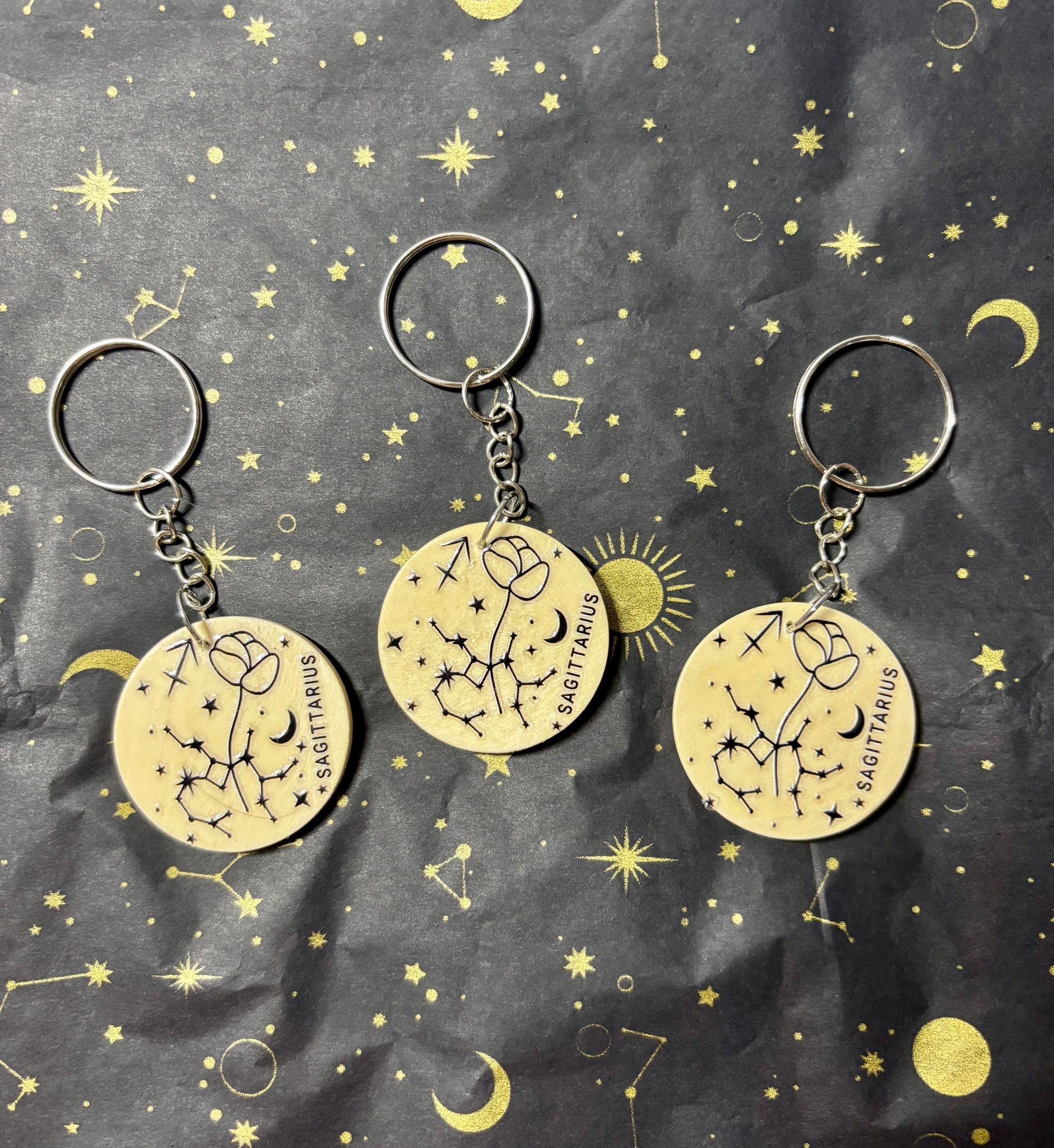 Sagittarius Zodiac Constellation Keyring – Wooden Star Sign Keychain